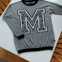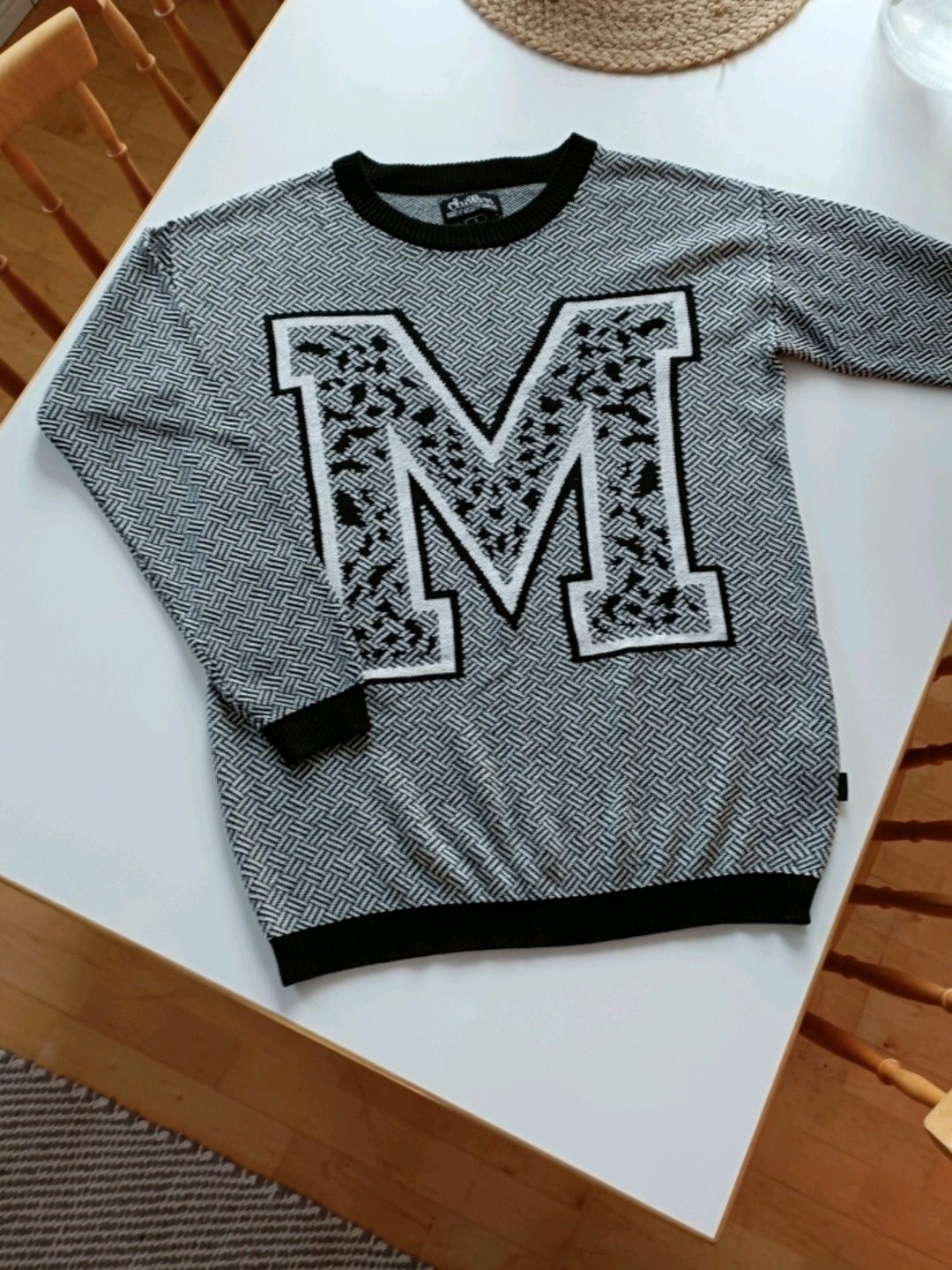 Mustavalkoinen neule. Lapussa koko S, mutta menee ennemmin M/L kokoiselle. Pehmeä ja sileä neulos.