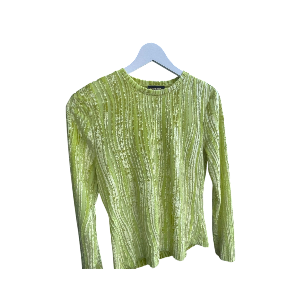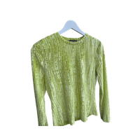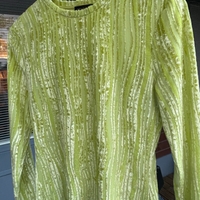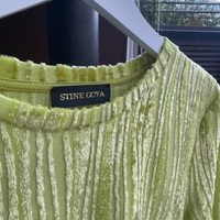 Vihreä teksturoidusta sametista valmistettu pitkähihainen pusero. Väri on kaunis ja kirkkaampi, miltä kuvissa näyttää.