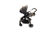 Tukeva lastenrattaat, säädettävä kuomu, tavakorilla.