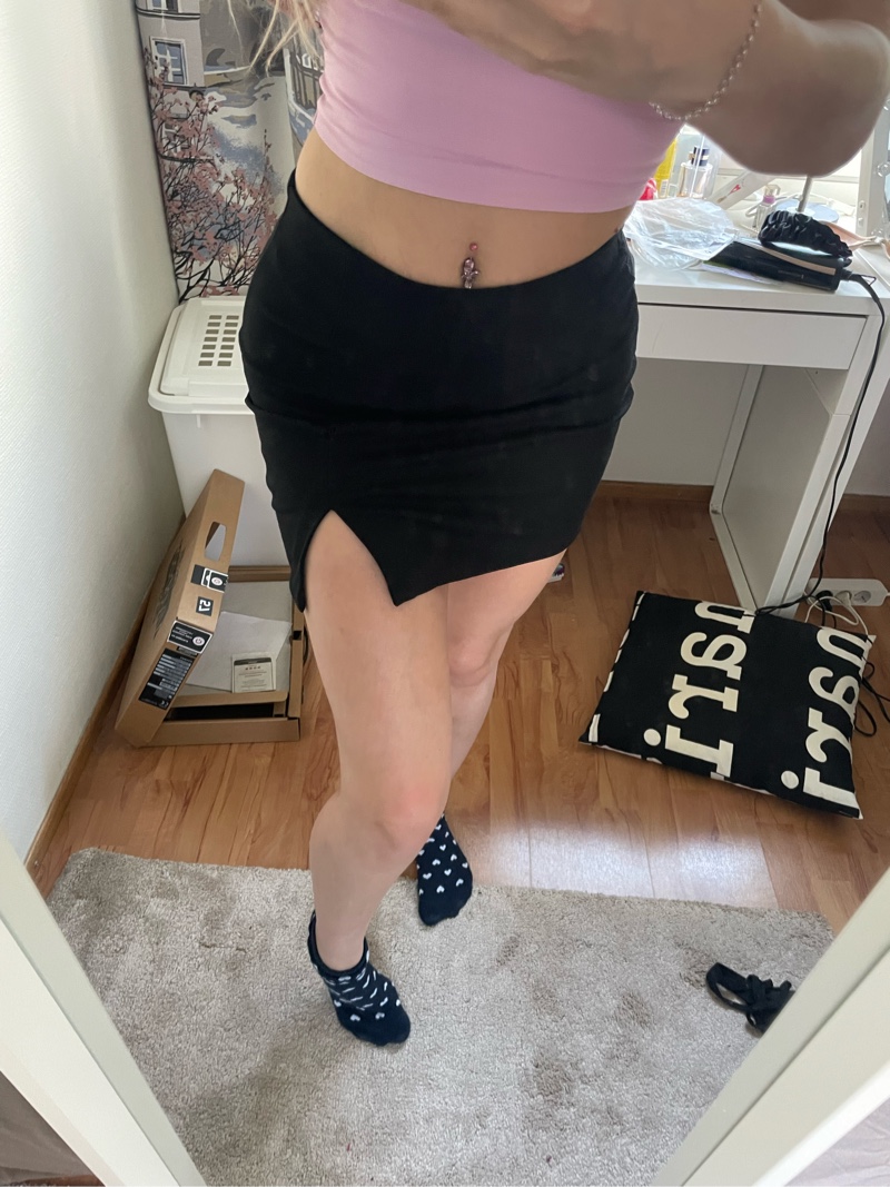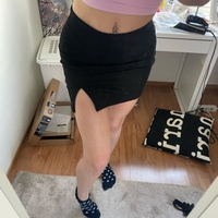 Naisten musta minihame pienellä halkiolla edessä. Koko M.