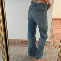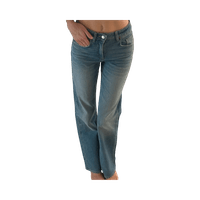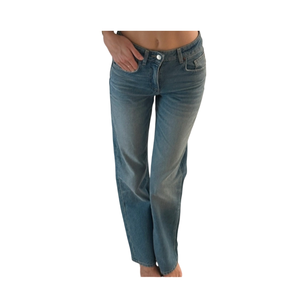 Mid-rise straight leg jeans with faded wash, everyday casual.