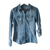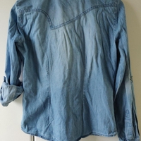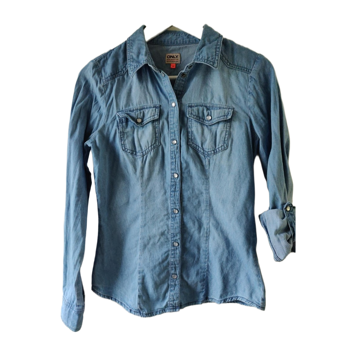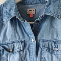 Uudenveroinen ihana kevyt farkkupaita kivoilla yksityiskohdilla, hihat saa käärittyä nappikiinnityksellä. Koko 34(XS).