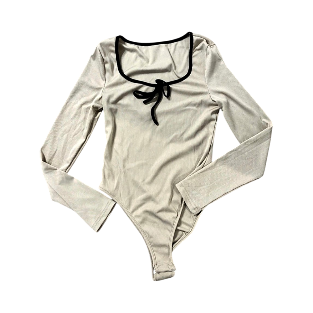 Beige long-sleeved bodysuit