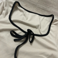 Pitkähihainen, beige bodysuit mustalla yksityiskohdalla.