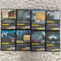 Täydellinen setti kaikille Potter-faneille! Mukana kaikki kahdeksan Harry Potter -elokuvaa DVD:llä. Levyt ovat käytettyjä mutta hyväkuntoisia, kaikki toimivat moitteettomasti. Täydellinen lahjaidea tai omaan maraton-viikonloppuun!