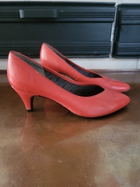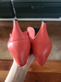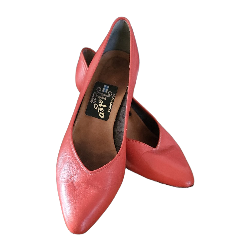 Punaisen oranssit nahkaiset avokkaat. Kotimaiset, käytetyt, hyväkuntoiset.