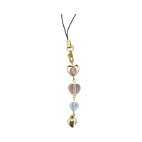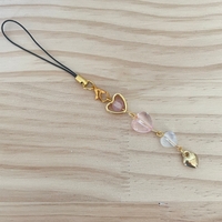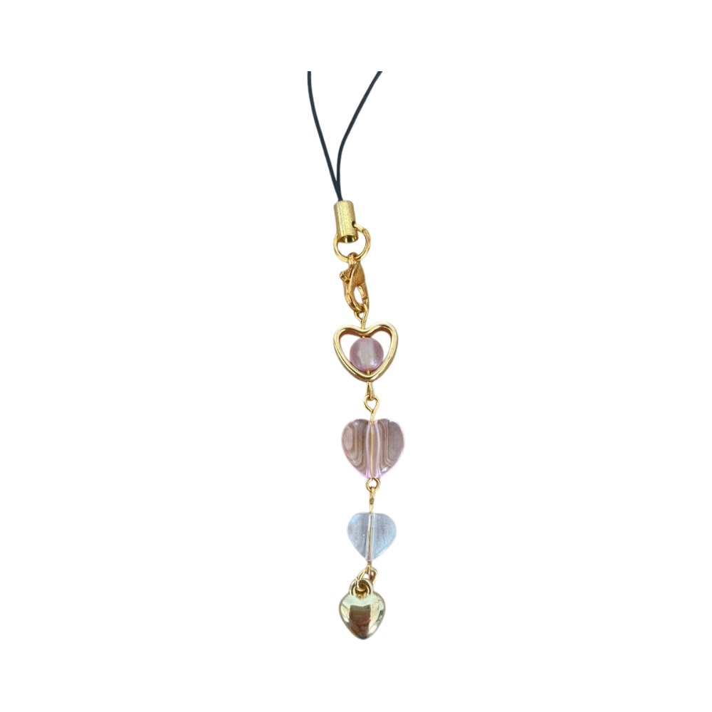 Käsintehty Puhelimen koru, pinkkejä ja kullanvärisiä sydänhelmiä. Lasi- ja akryylihelmiä🫶🏻
