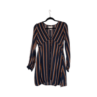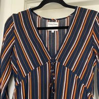 Revolvelta ostettu mekko, rinnan alla olevat nauhat säädettävissä. Muuten erinomainen kunto, mutta toisesta hihansuusta irronnut nappi, saa korjattua vaikka ompelemalla pari ommelta :) XS mutta hyvä myös S-koolle