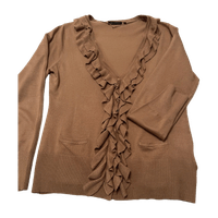 Kamelin värinen neuletakki. Kai-kai 54cm, pituus 64cm. Koko XL. Käytetty pari kertaa. Ilmainen toimitus koodilla MV71533.