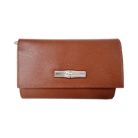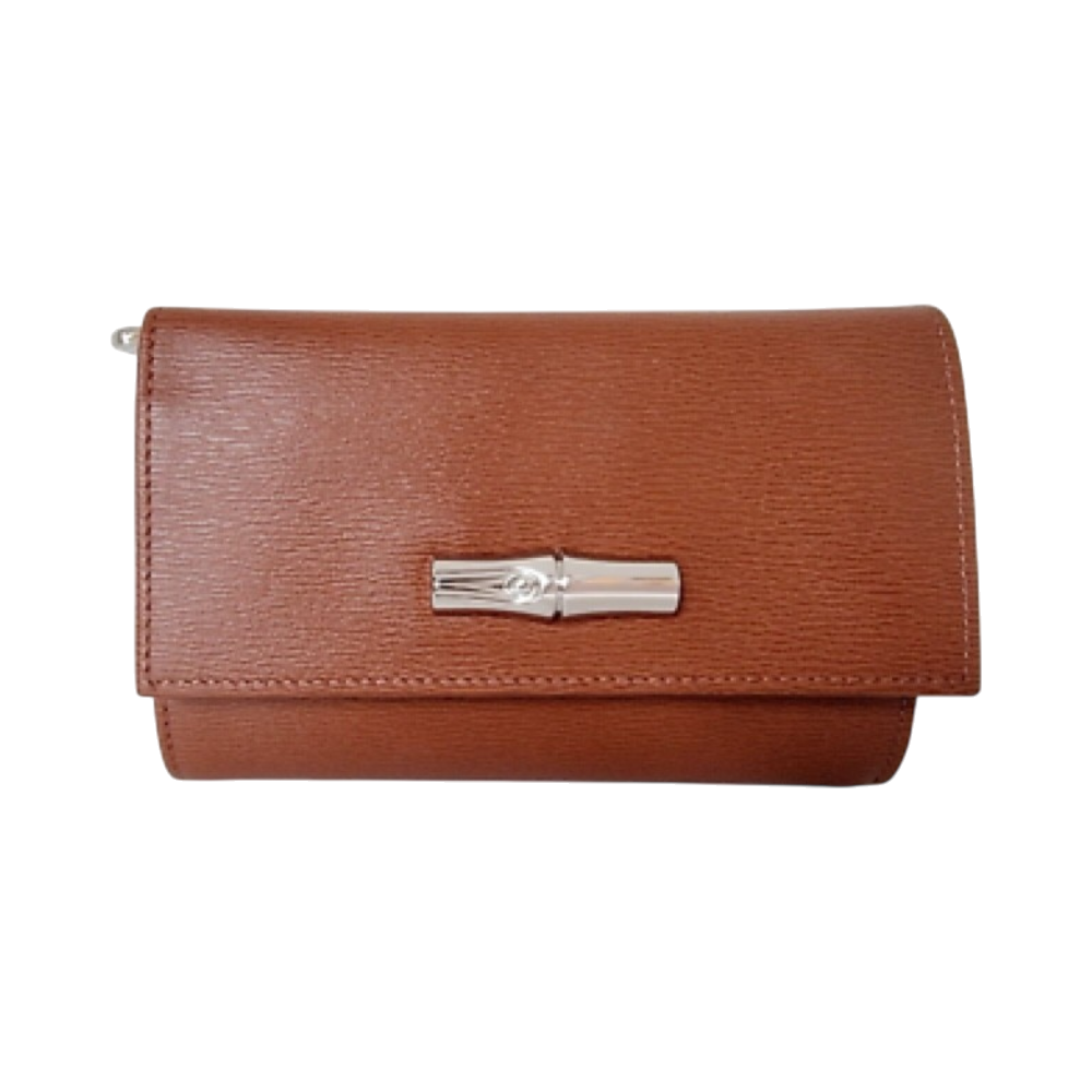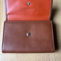 Longchamp authentic brown wallet with zip coin pocket and clasp.
