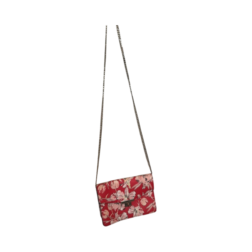 Punainen kukkakuvioinen olkalaukku