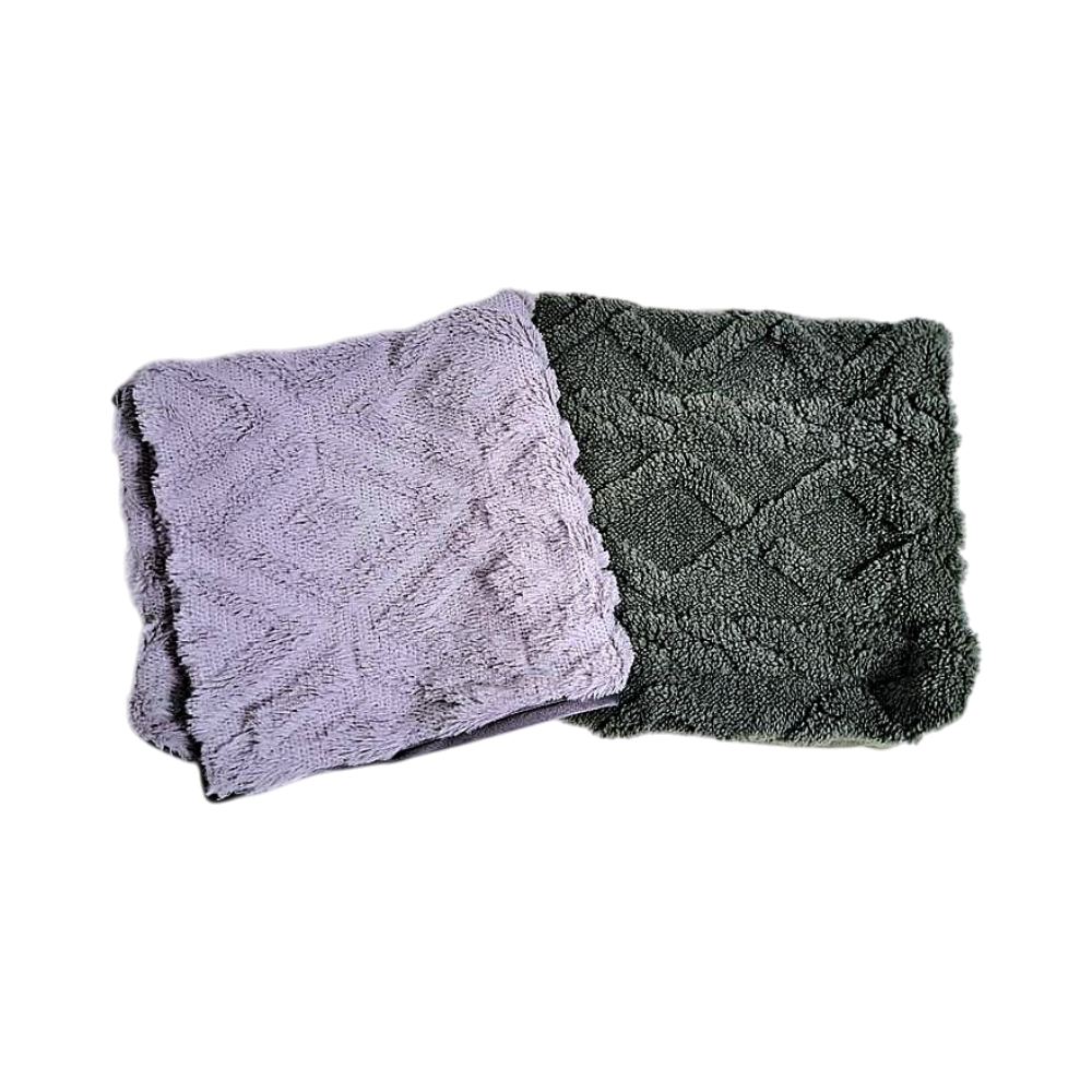 Kaksi pörröistä tyynynpäällistä, koko 50x50. Eläintalous