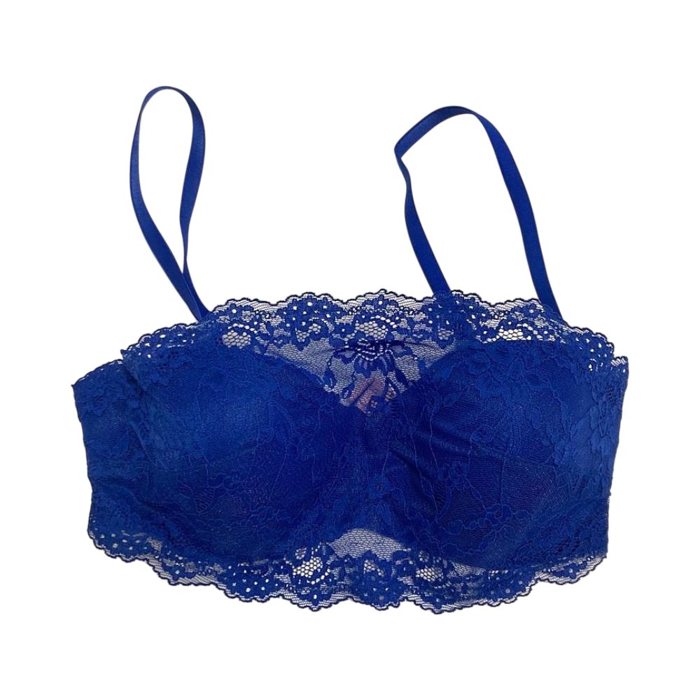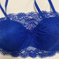 Beautiful bright blue balconette-style bra with light padding, adjustable straps and delicate floral lace. Soft, stretchy and comfortable. In very good condition with minimal wear.