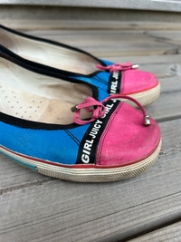 Siniset ja pinkit ballerinat, käytetyt, mukavat jalassa.