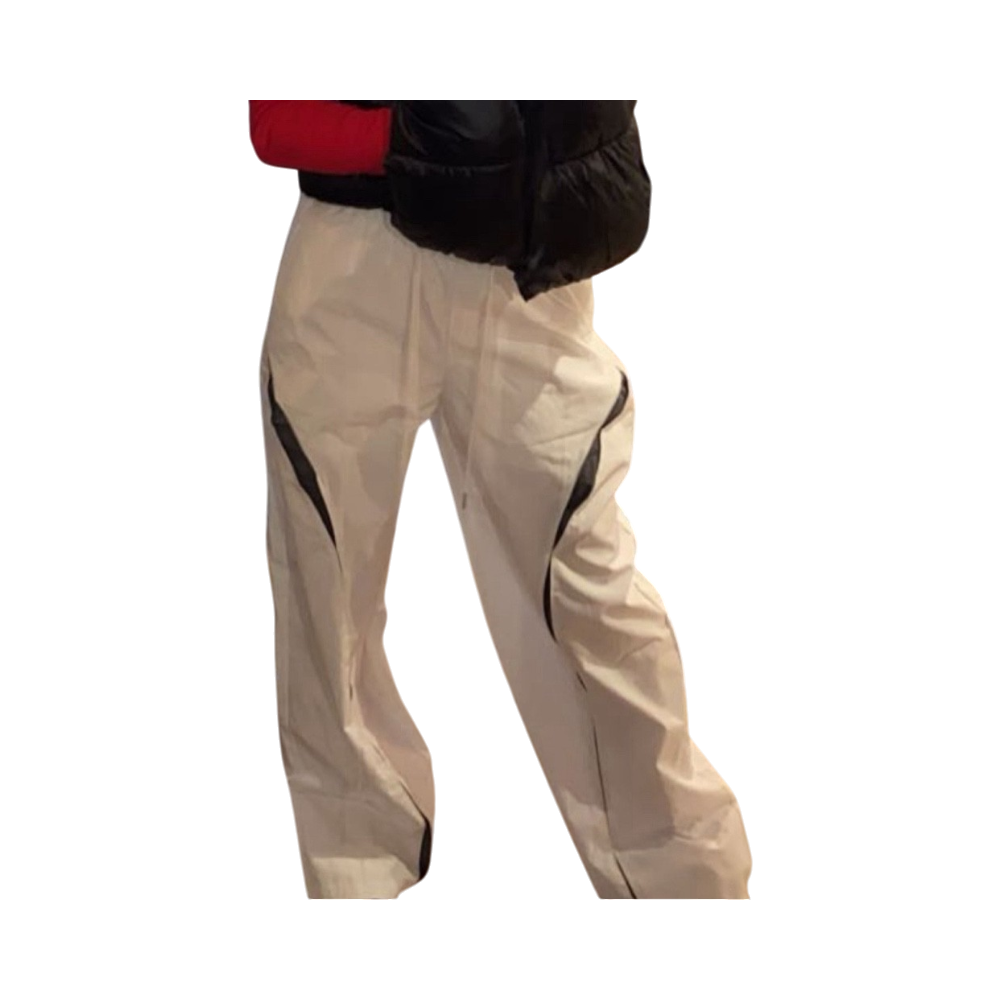 Valkoiset, sporttiset irtohousut mustilla yksityiskohdilla.