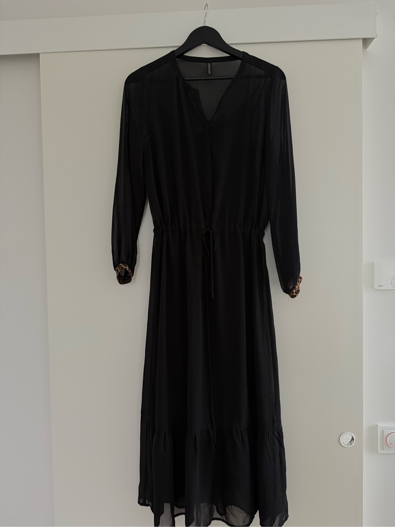 Tyylikäs pitkä mekko. Käytetty kerran. Läpikuultava kangas, mukana tulee alusmekko.
