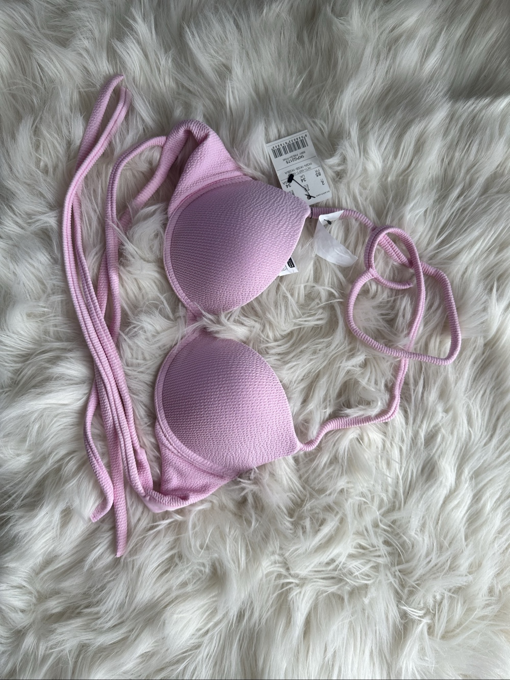 Textured bikini top in pink. New with tags. Size 75.