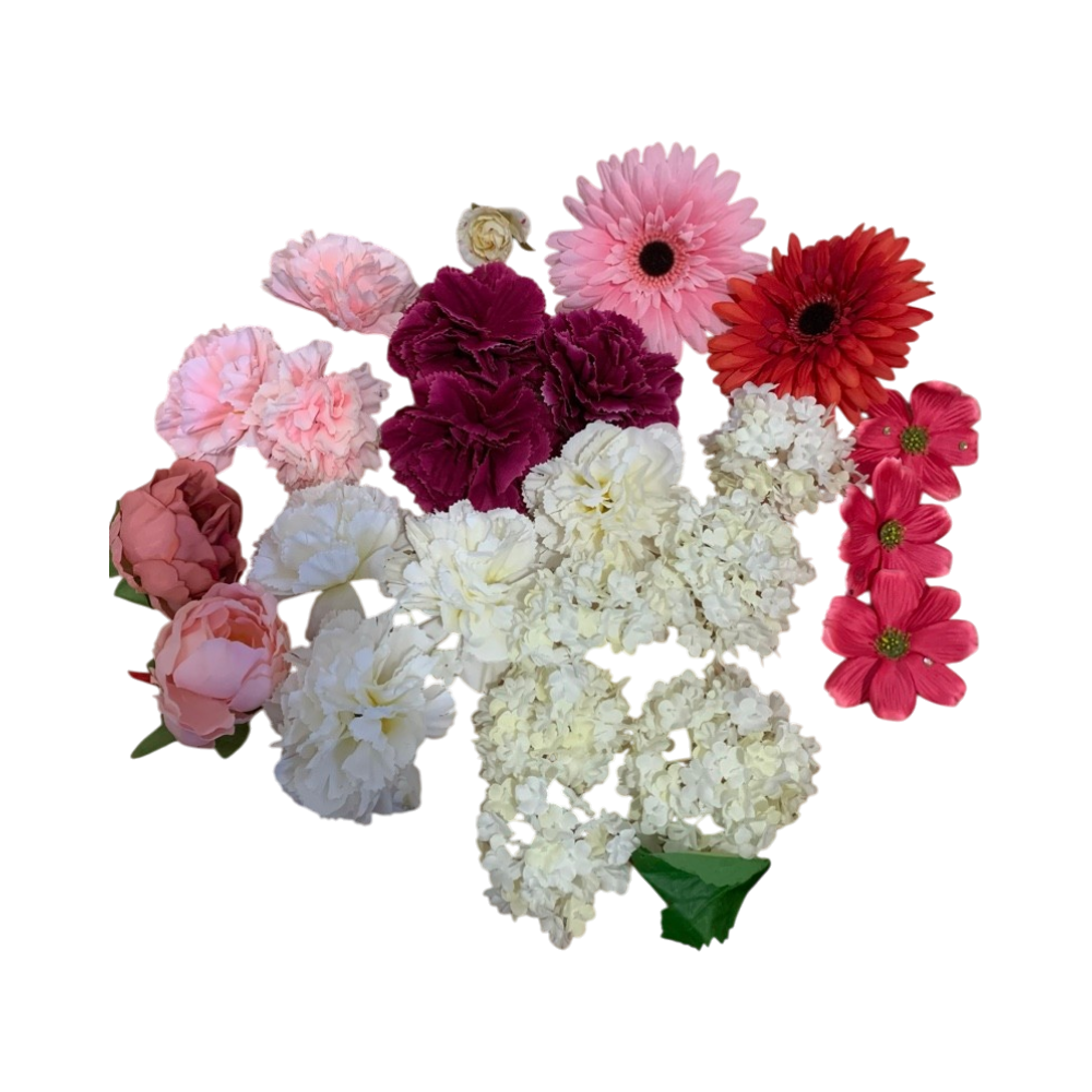 Erilaisia tekokukkia askarteluun tai koristeluun.