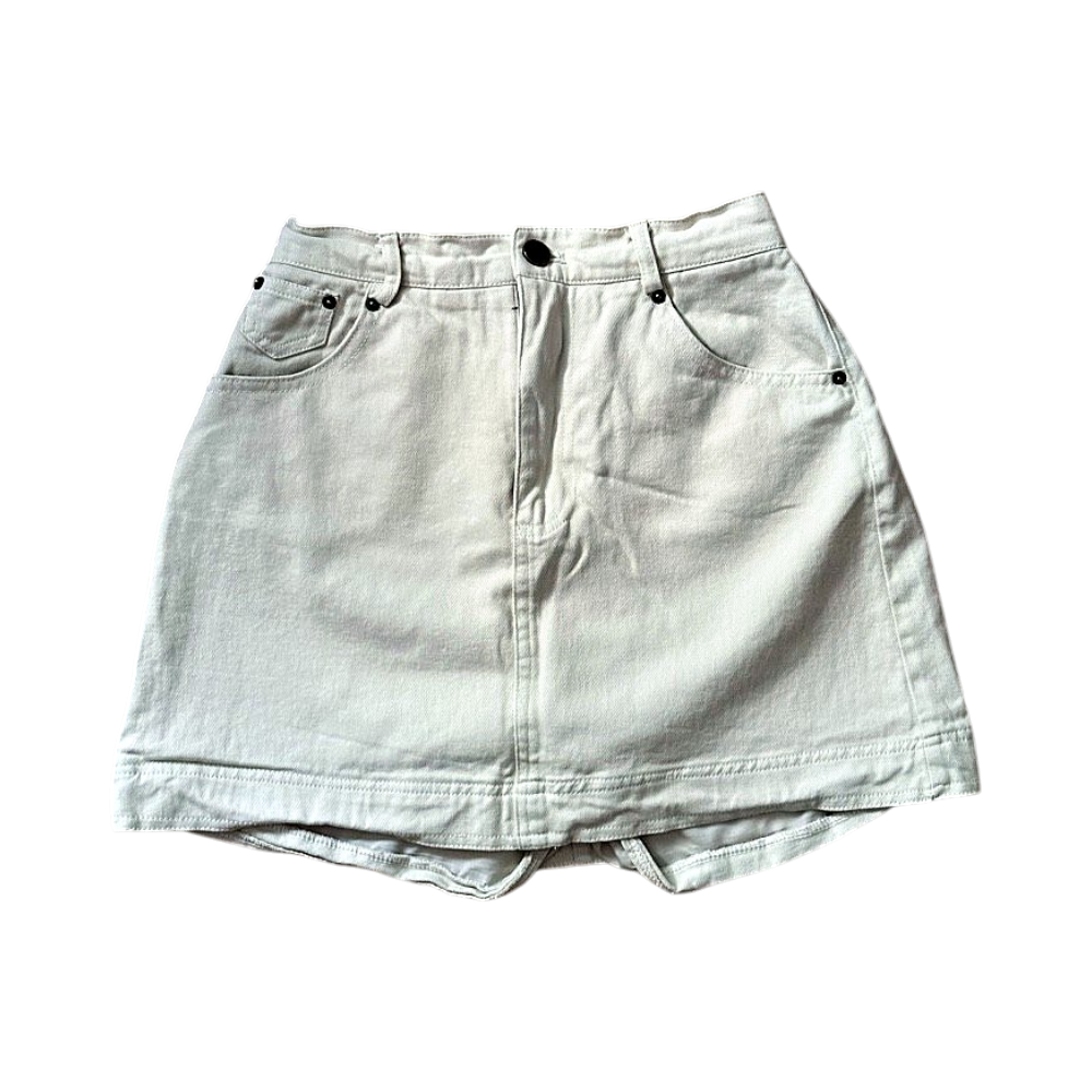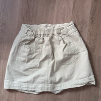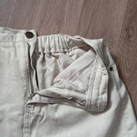 There is a zipper and button at front, elastic waistband. There are 2 pockets on the sides and 2 on the back.