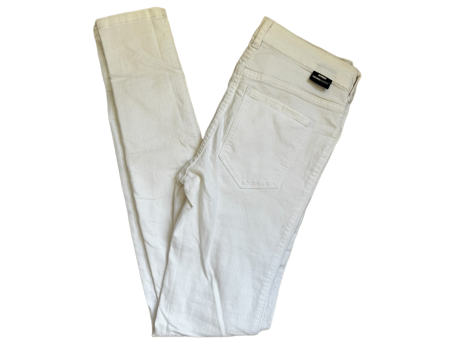 Valkoiset naisten farkut, slim fit, pienet tahrat näkyy kuvissa