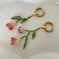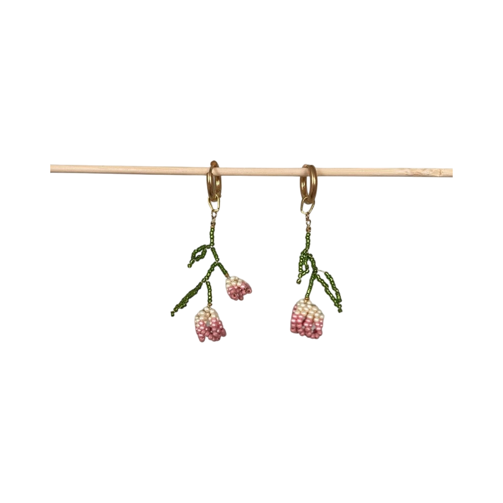 Käsintehdyt epäsymmetriset helmistä punotut kukkakorvakorut🌷 Renkaiden halkaisija 10mm ja pituus noin 6 cm.