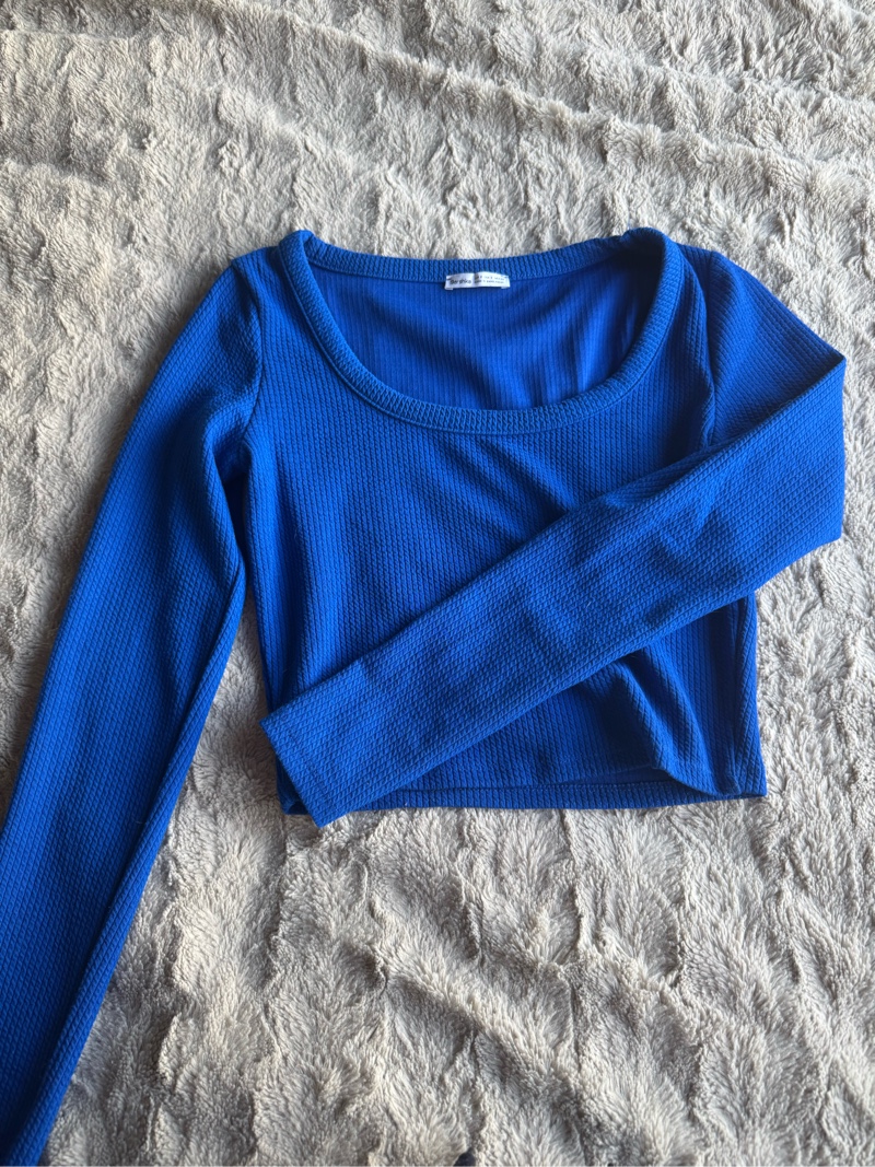 Pitkähihaista ribbikangasta, lyhyt malli, kokoa S.
