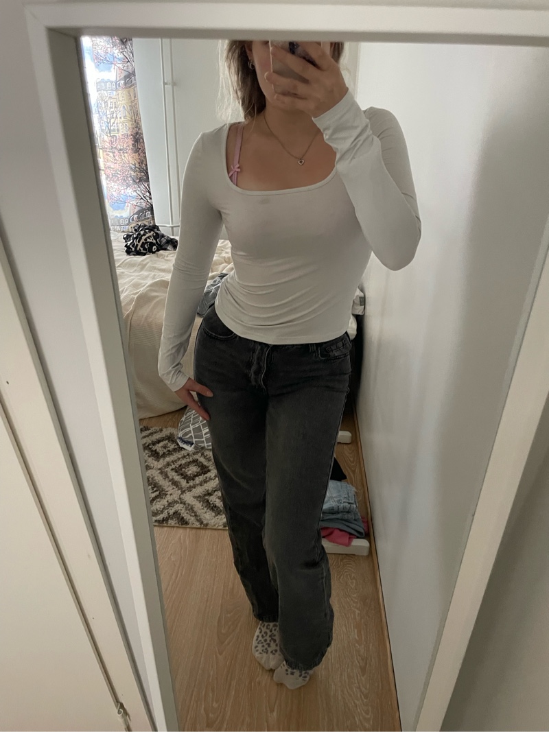 Valkoinen naisten pitkähihainen paita, istuva malli