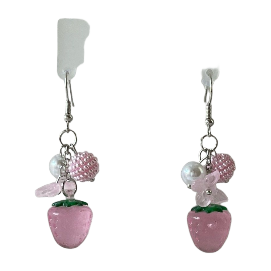 Käsintehdyt vaaleanpunaiset mansikka korvakorut.