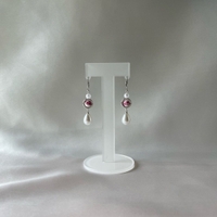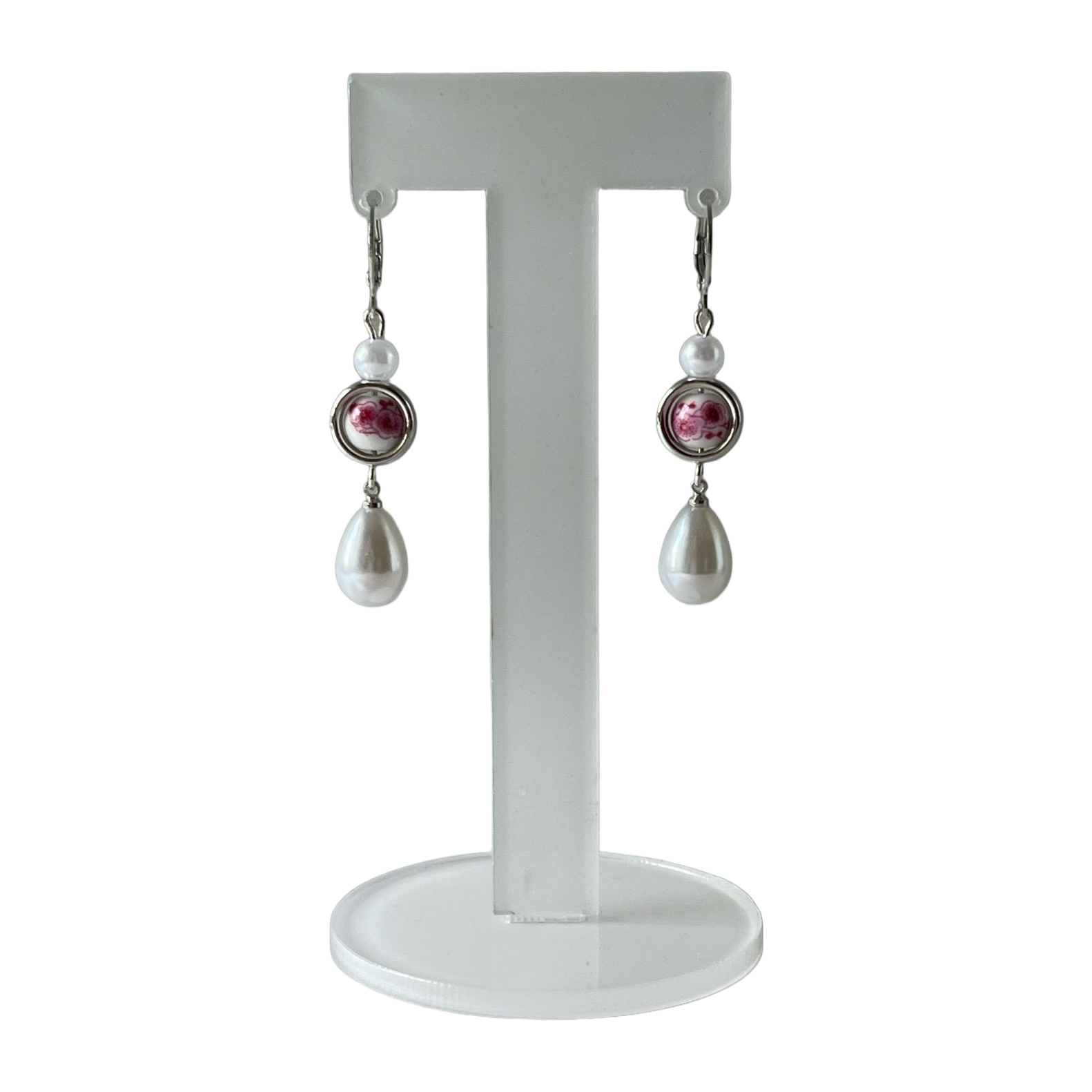 Käsintehdyt korvakorut kukkaisilla posliini helmillä sekä helmiriipuksilla.