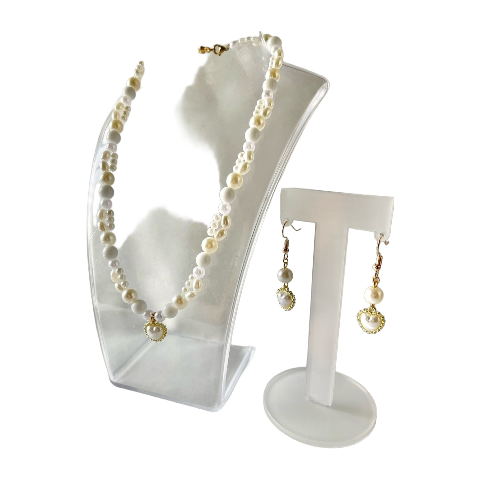 Käsintehdy korusetti sisältäen sydän kaulakorun sekä korvakorut.