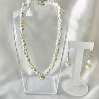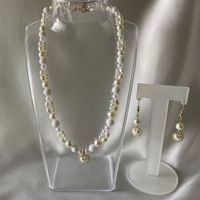 ruostumaton teräs. kaulakoru 43cm (mahdollista lisätä jatkopala) ja korvakorut 4,5cm.