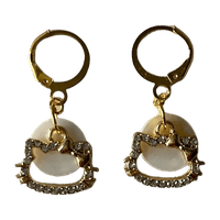 Käsinkootut Hello Kitty korvakorut, simpukankuori takana.