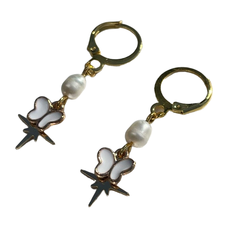 #earrings #korvakorut #handmade #käsintehty #pearl #helmi #star #tähti #butterfly #perhonen