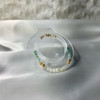 Käsintehty rannekoru luonnonkivihelmistä (amatsoniitti), keskellä makeanvedenhelmi.