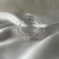 Käsintehty rannekoru luonnonkivihelmistä (lohikäärmeen suoni akaatti), keskellä makeanvedenhelmi.