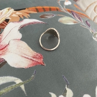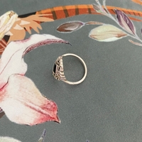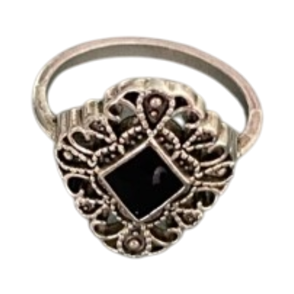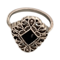 Kevyt sormus mustalle kivellä, tarkkaa kokoa ei tiedossa, arvio M-L