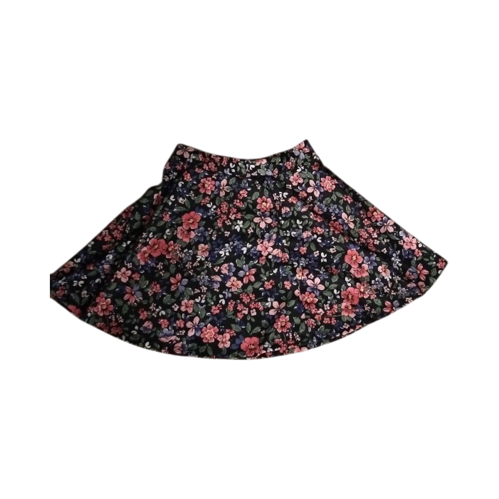 Musta, vaaleanpunaisin kukin koristeltu lyhyt hame.