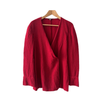 Klassinen paksuhko neuletakki, kietaisutyylinen. Kokomerkintä 42, pituus 77cm ja kai kai mitta noin 51cm, käytetty koossa m/l. Siistissä kunnossa