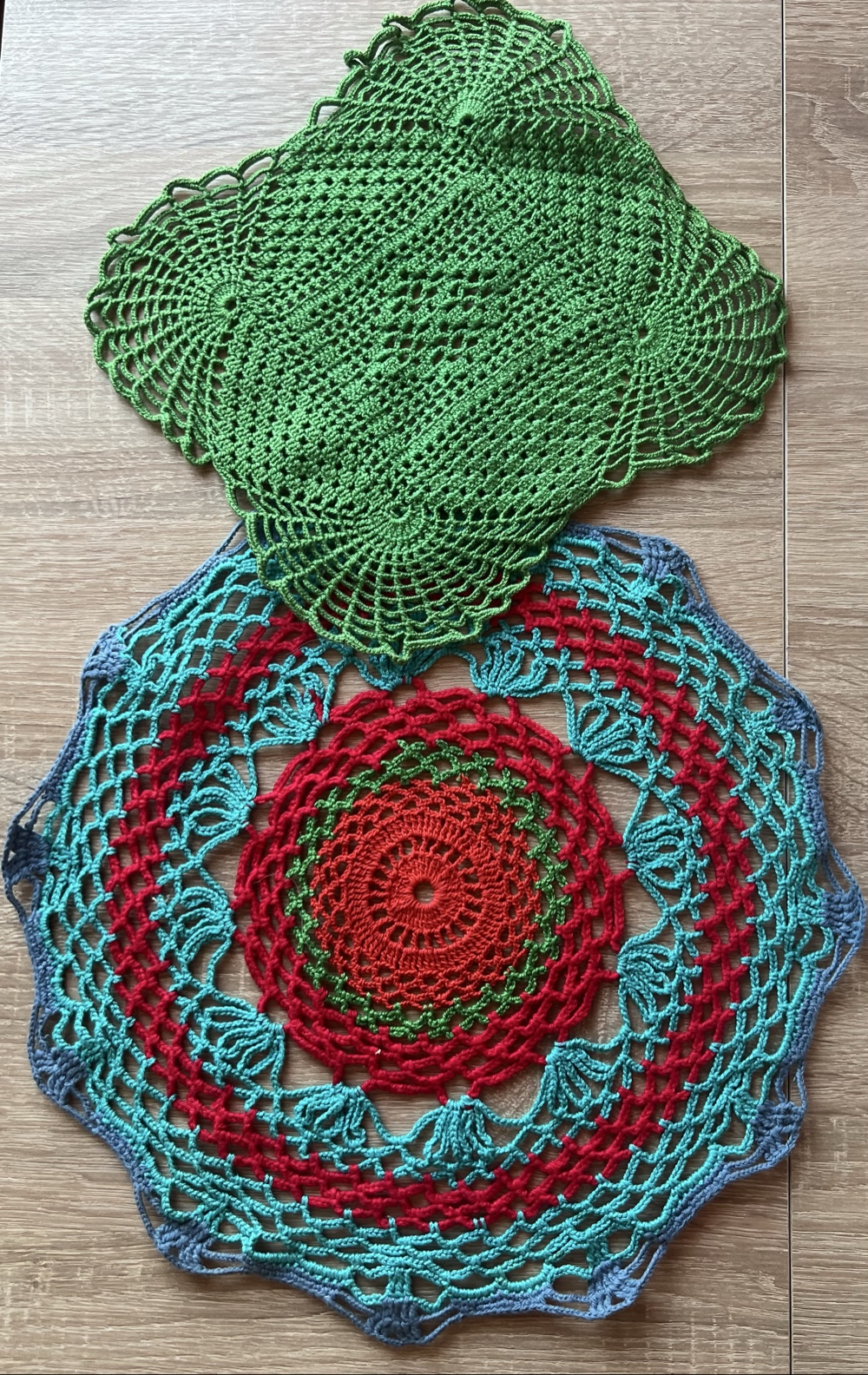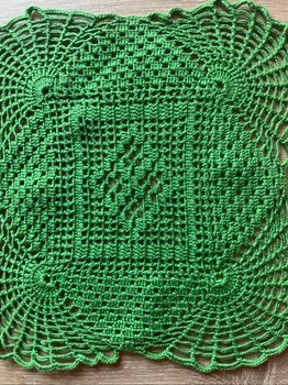 Skaistas tamborētās salvetes,maza zaļa 27×27 cm,var likt taisni var likt rombiska veida uz galda, apaļa 32×32 cm
