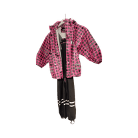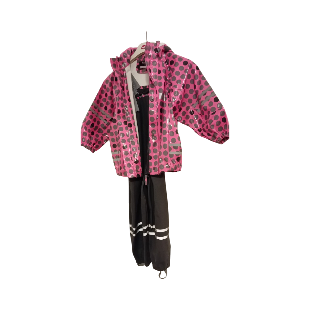 HansCompany sadevaatteet 104cm. Mummulakäytössä muutaman kerran päällä käyneet kurahousut ja takki. Käytännössä uudenveroiset jalkalenkkeineen. Irrotettavassa hupussa kiristysmahdollisuus.