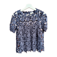 Vähälle käytölle jäänyt Vilan pitsipaita. Alla v-kaula-aukkoinen toppi.