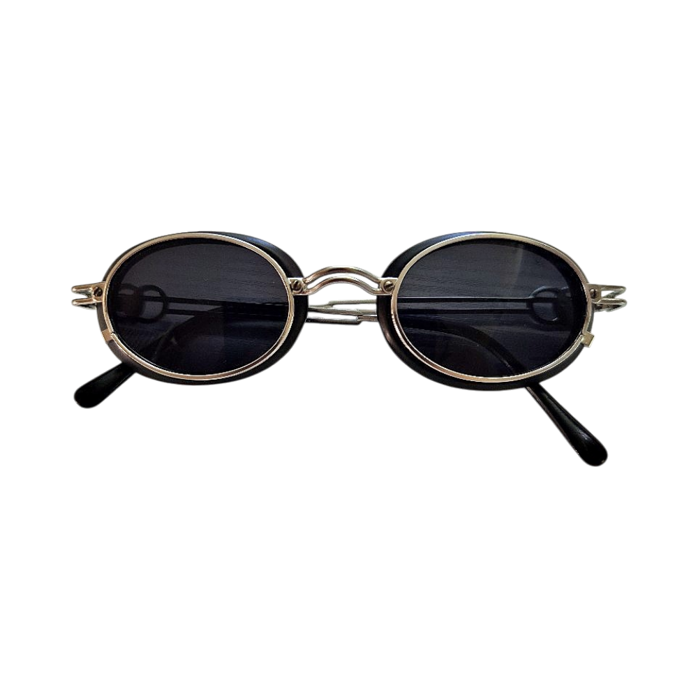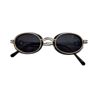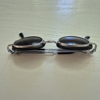 Pyöreät mustat aurinkolasit hopeakehyksillä.