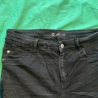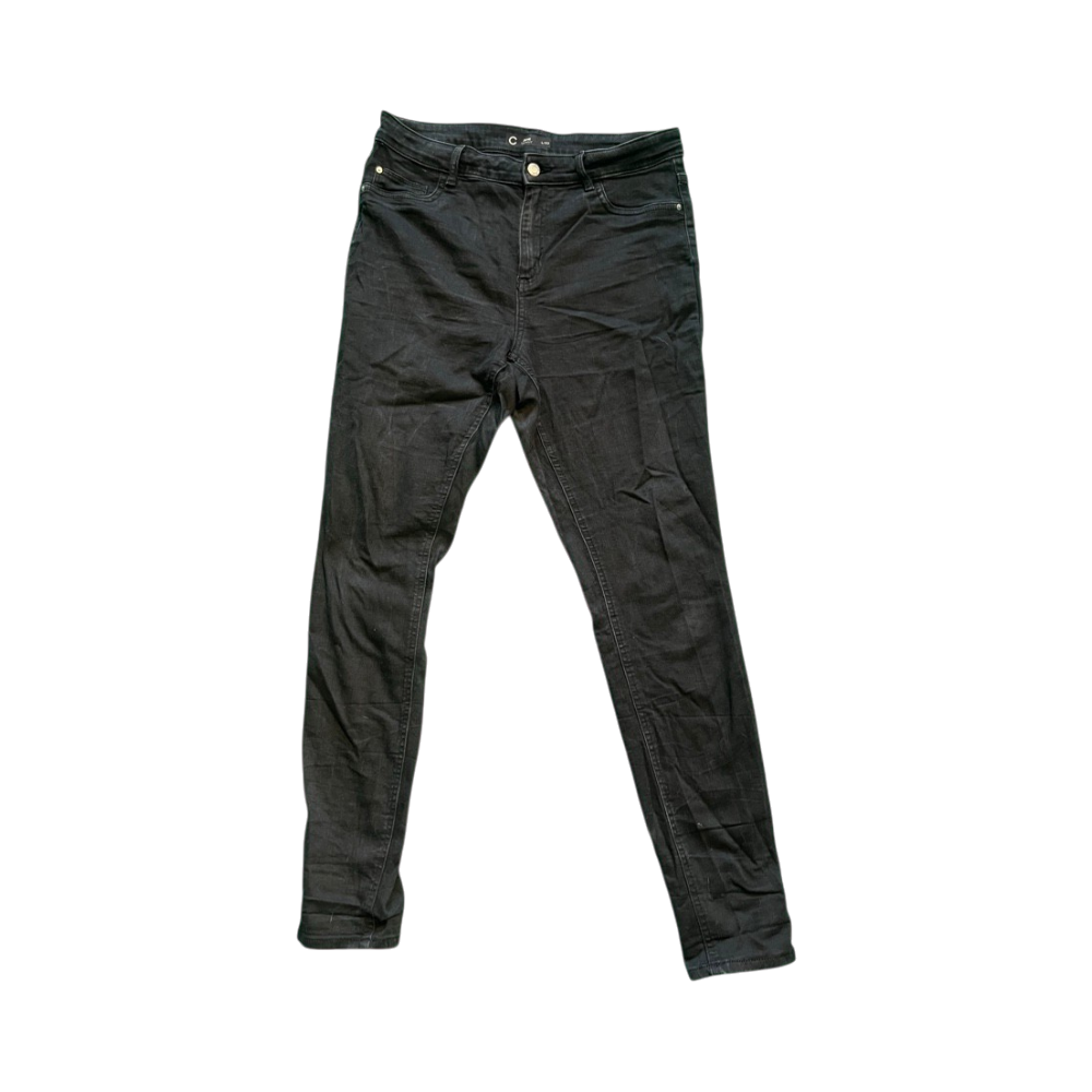 Korkeavyötäröiset mustat skinny-farkut, koko L/32.