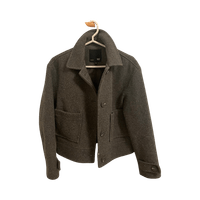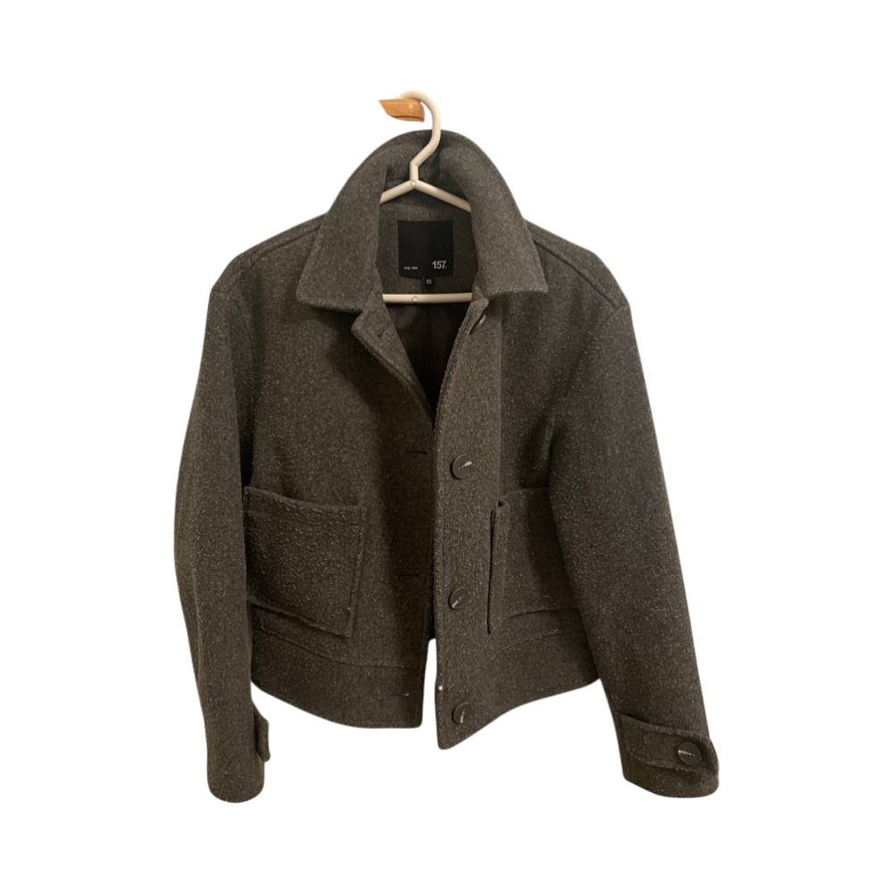 Lyhyt harmaa naisten villasekoitejakku, hyvän kuntoinen.