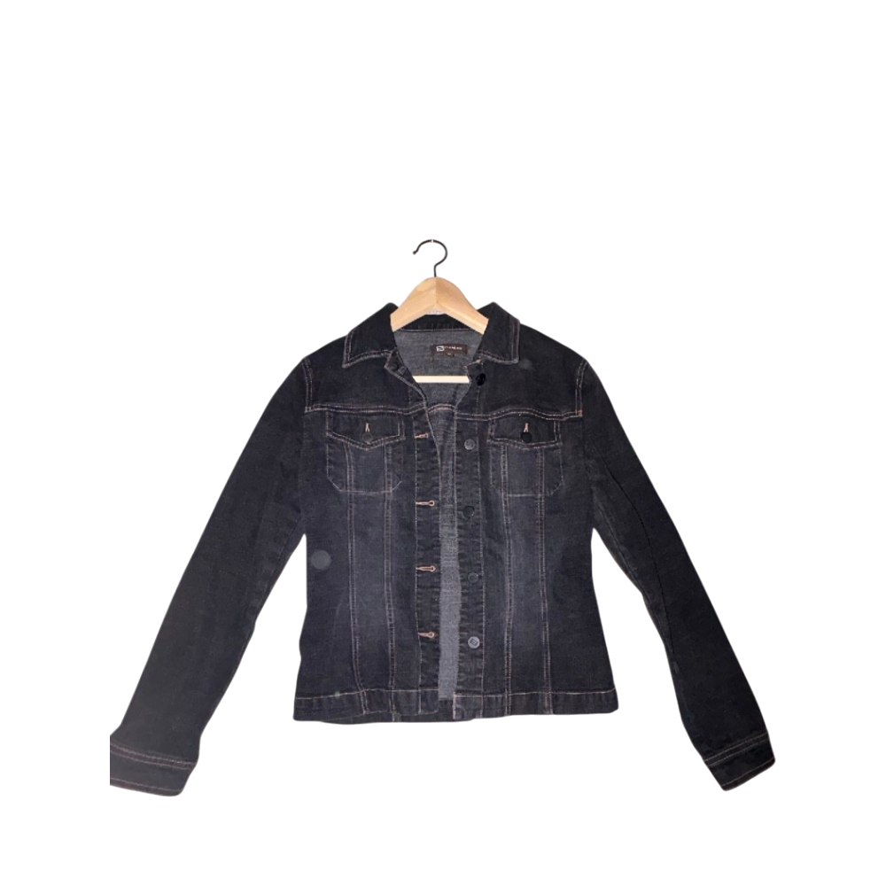 Naisten tumma farkkutakki, koko M, napit edessä. Todella hyvässä käytössä ja vastaa kokoaan!