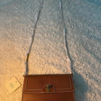 Täysin uusi, laput kiinni Fossil Ainsley olkalaukku, väri ruskea. Tuotenumero: ZZO2HM165-O00. Ensimmäinen kuva on otettu netistä, kyseessä on sama lakku, ja siitä näkee miltä ketju näyttää!
