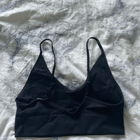 Musta ribbineulottu toppi ohuilla olkaimilla, säädettävä selkäosa.