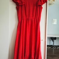 Koko vastaa n. M kokoa, sopii myös S kokoiselle. Kainalo-kainalo 48cm, leveys vyötärön kohdalta 37cm, pituus olka-helma n. 102cm.