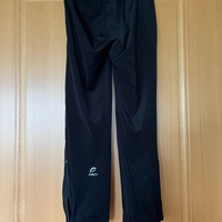 Tyttöjen mustat ulkoiluhousut, vetoketjut lahkeissa. Koko 140