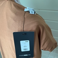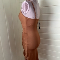 Bronze ruched bodycon dress with adjustable straps, size S.
